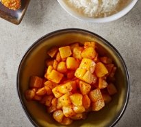 carree de pommes de terre assaisonnés à la sauce teriyaki et a la sauce chili douce